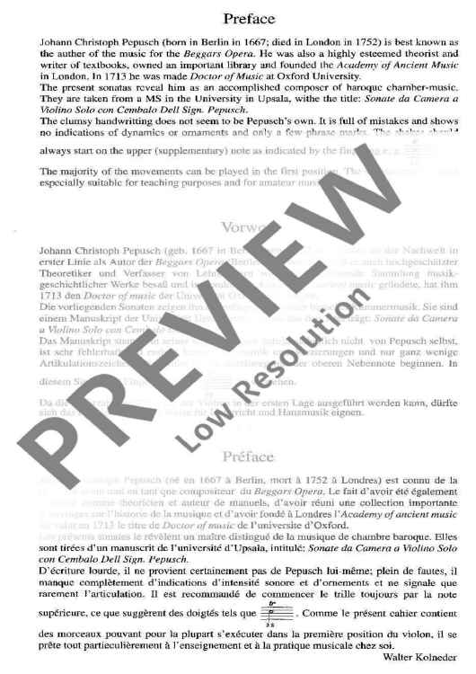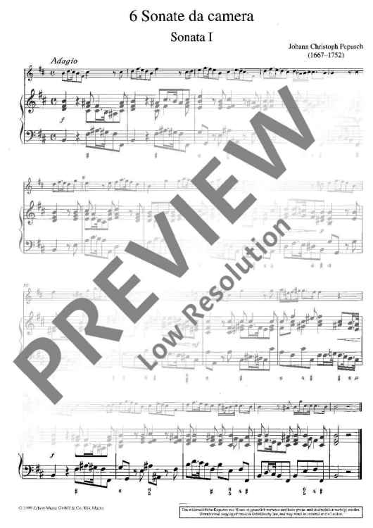 "Six Sonate da camera" Sheet Music by John Christopher Pepusch