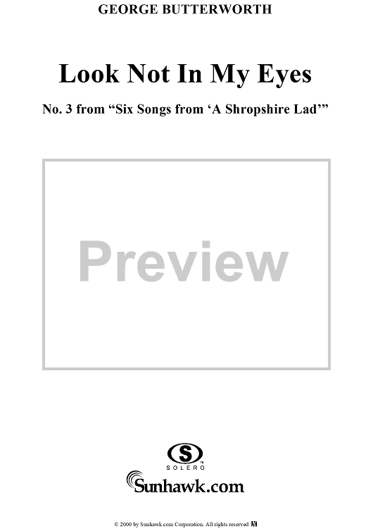 Digital Sheet Music for Six Songs from 'A Shropshire Lad', No. 3, Look Not In My Eyes by George Butterworth, A. E. Housman scored for Voice/Piano; id:273625