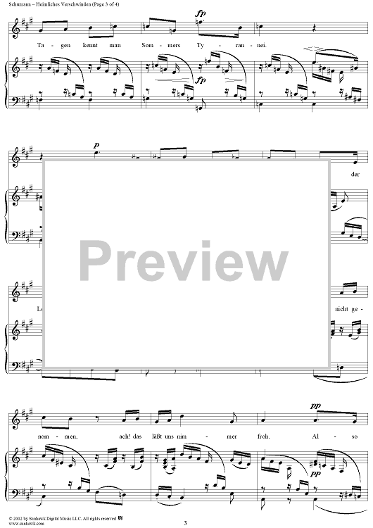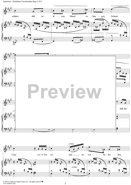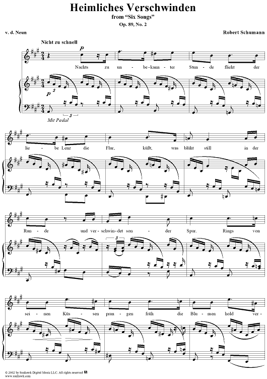 Digital Sheet Music for Six Songs, Op. 89, No. 2: Heimliches Verchwinden by Robert Schumann, V. D. Neun. scored for Voice/Piano; id:258786