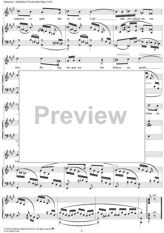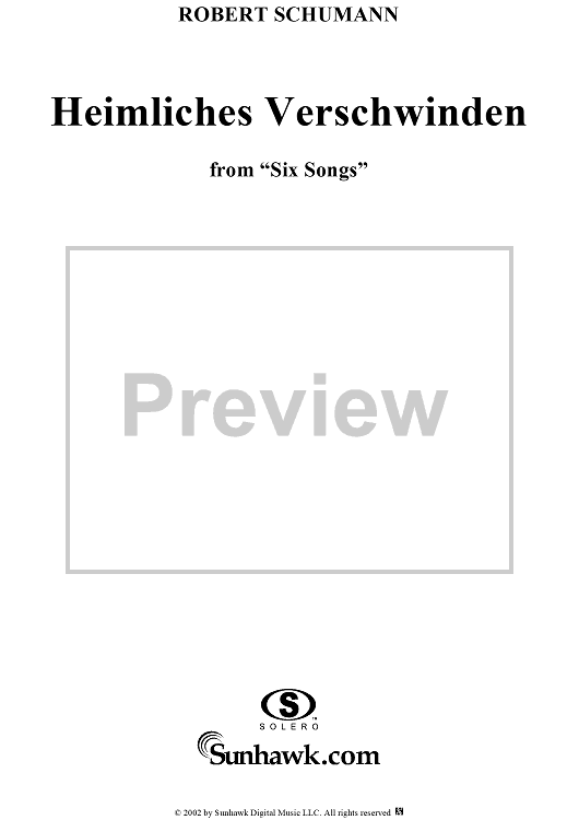"Six Songs, Op. 89, No. 2: Heimliches Verchwinden" Sheet Music by Robert Schumann