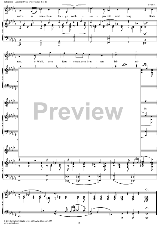 "Six Songs, Op. 89, No. 4: Abschied vom Walde" Sheet Music by Robert Schumann