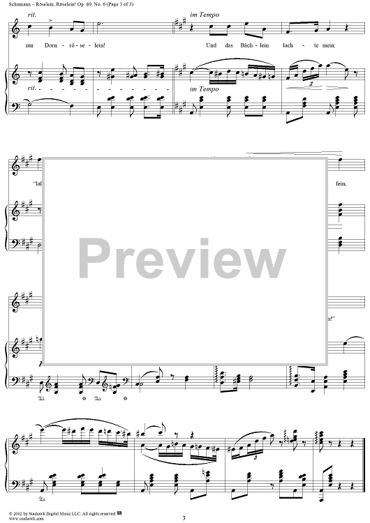 Digital Sheet Music for Six Songs, Op. 89, No. 6: Röselein, Röselein! by Robert Schumann, V. D. Neun. scored for Voice/Piano; id:258791