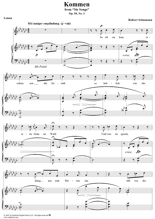 Digital Sheet Music for Six Songs, Op. 90, No. 3 - Kommen und Schneiden - No. 3 from "Six Poems" op. 90 by Robert Schumann, Lenau scored for Voice/Piano; id:258490
