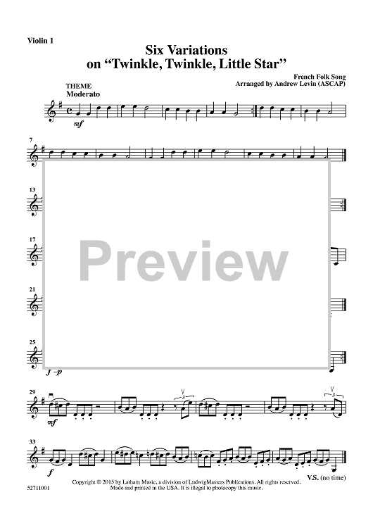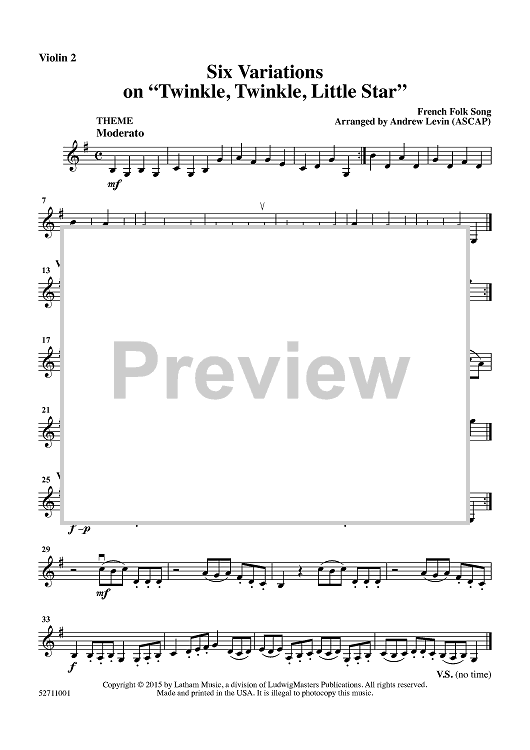 Grade 3 fun for two players, perfect for recruiting or end of year recitals. Twinkle morphs through major, minor, arpeggiated, and chromatic variations. The viola and cello versions are compatible.
