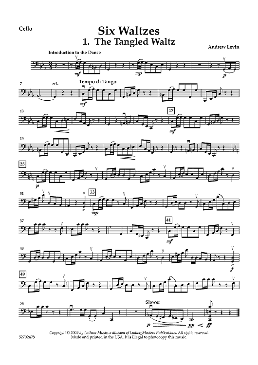 "Six Waltzes for String Trio - Cello" Sheet Music by Andrew Levin