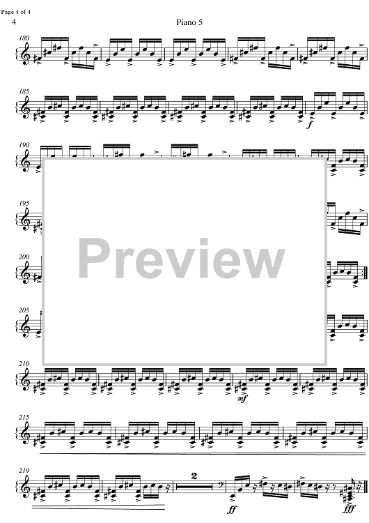 Digital Sheet Music for Sixteen - Piano 5 by Tim Seddon scored for 6 Pianos; id:337461