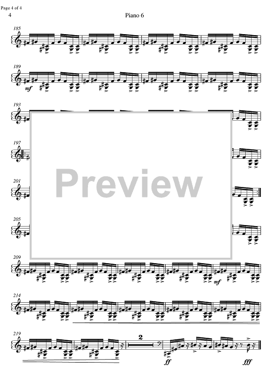Digital Sheet Music for Sixteen - Piano 6 by Tim Seddon scored for 6 Pianos; id:337462