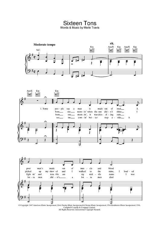 Digital Sheet Music for Sixteen Tons by Merle Travis scored for Piano/Vocal/Chords; id:394992