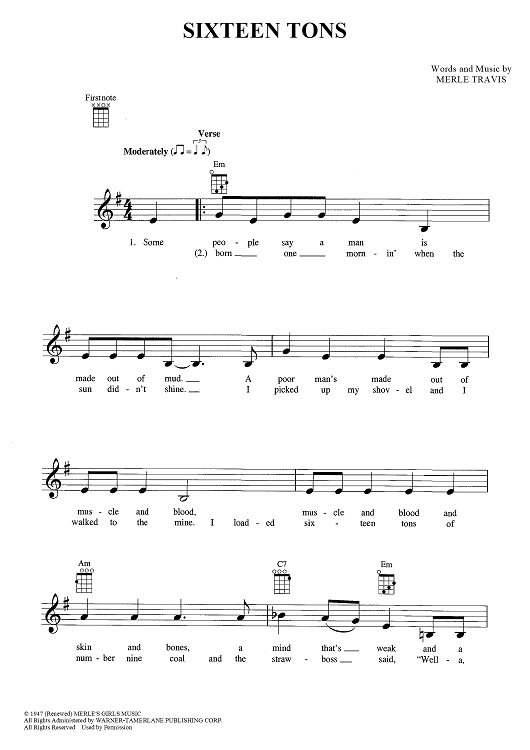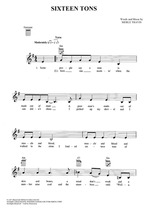 Digital Sheet Music for Sixteen Tons by Merle Travis, Tennessee Ernie Ford scored for Ukulele/Vocal; id:447374