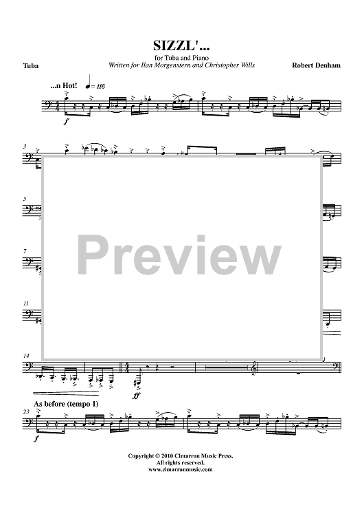 Digital Sheet Music for Sizzl’… - Tuba by Robert Denham scored for Tuba and Piano; id:410158