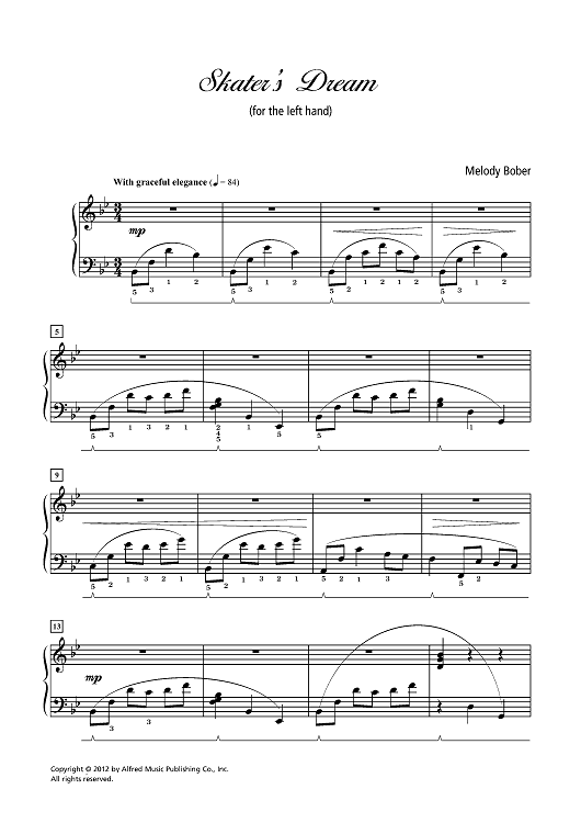 Digital Sheet Music for Skater's Dream (for the left hand) by Melody Bober scored for Piano; id:462936