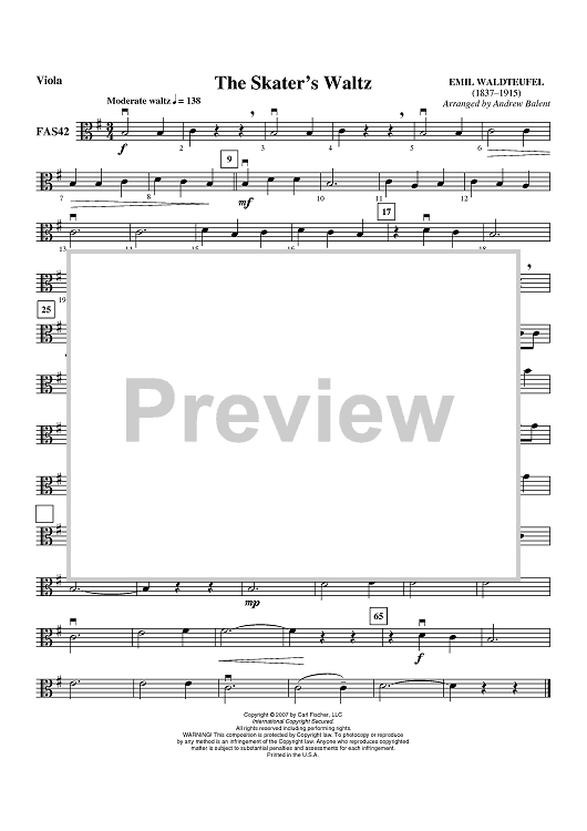 Digital Sheet Music for Skater's Waltz, The - Viola by Andrew Balent, Emil Waldteufel scored for Orchestra; id:408087