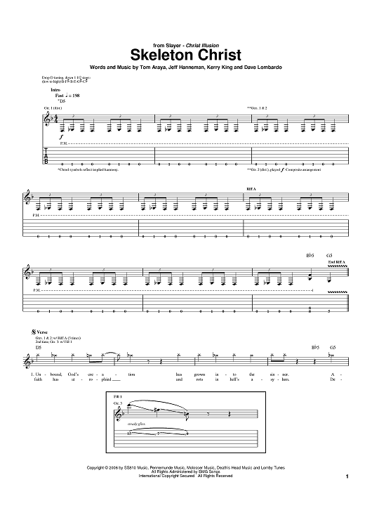 Digital Sheet Music for Skeleton Christ by Tom Araya, Jeff Hanneman, Kerry King, Dave Lombardo, Slayer scored for Guitar Tab; id:397556