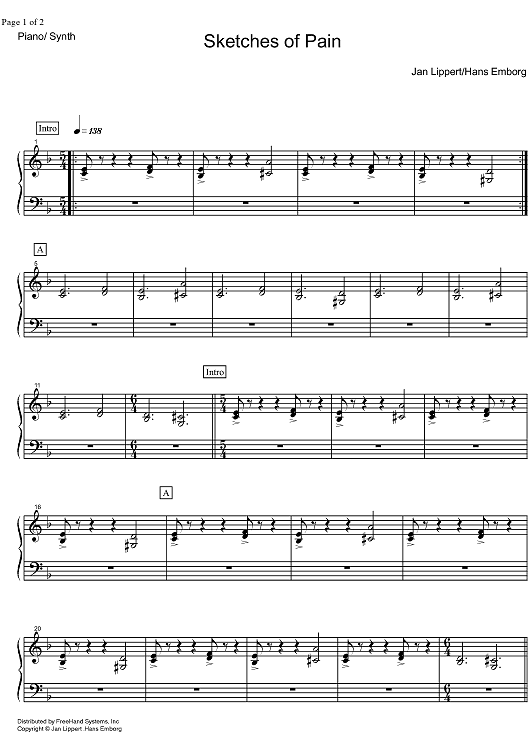 Digital Sheet Music for Sketches of Pain - Piano/Synth by Hans Emborg, Jan Lippert scored for Ensemble; id:323682