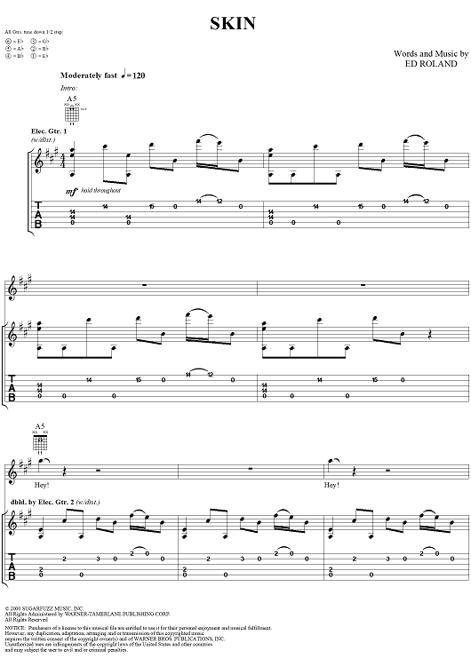 Digital Sheet Music for Skin by Collective Soul, Ed Roland scored for Guitar Tab/Vocal; id:286836