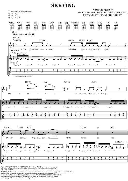 Digital Sheet Music for Skrying by Matthew McDonough, Gurrg, Ry-Know, Chad Gray, Mudvayne scored for Guitar Tab/Vocal; id:297592