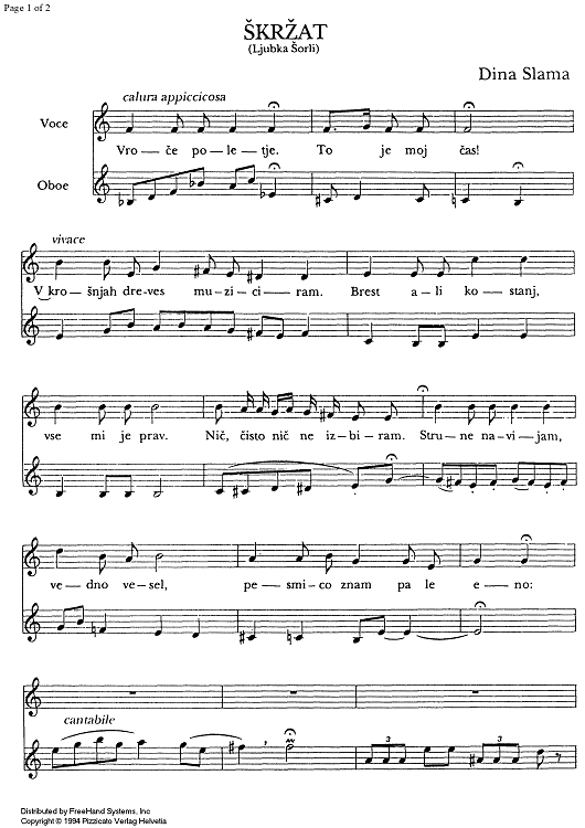 Digital Sheet Music for Skrzat by Dina Slama scored for Soprano or Tenor/Oboe; id:334432