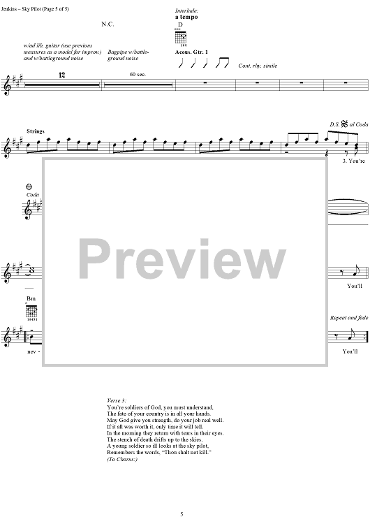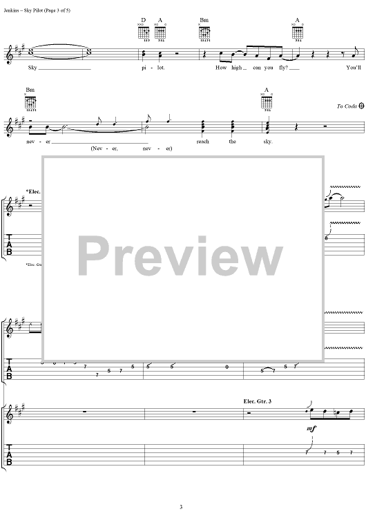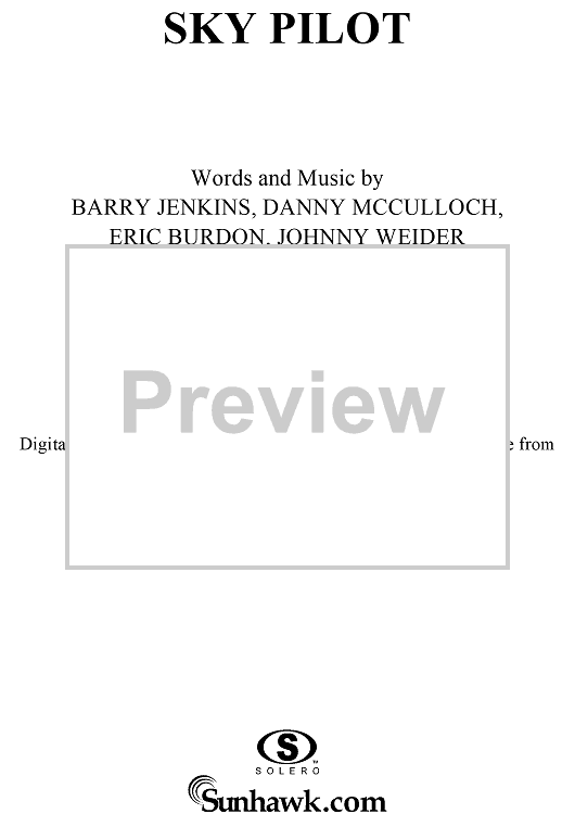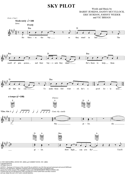 Digital Sheet Music for Sky Pilot by The Animals, Eric Burdon, Barry Jenkins, Danny McCulloch, Johnny Weider, Vic Briggs scored for Guitar Tab/Vocal; id:303174