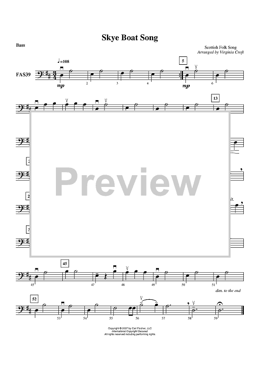 Digital Sheet Music for Skye Boat Song - Bass by Scottish Folk Song, Virginia Croft scored for Orchestra; id:408217