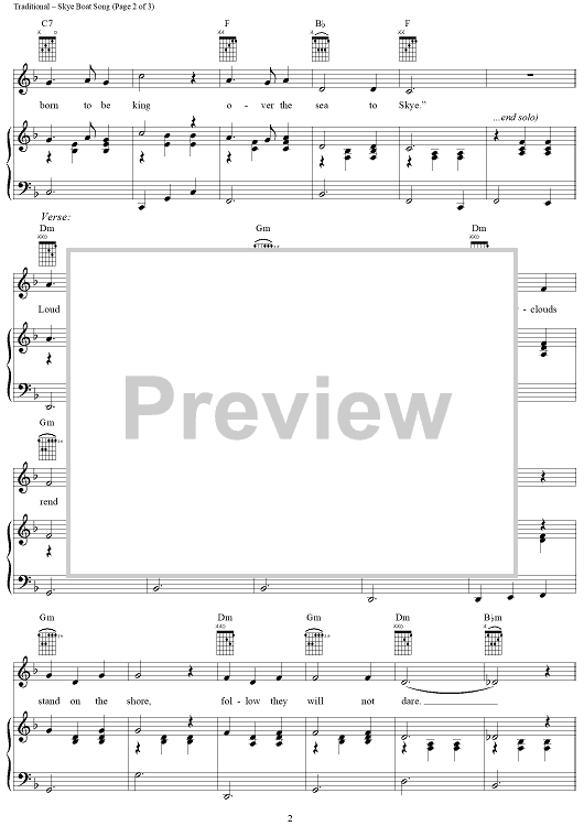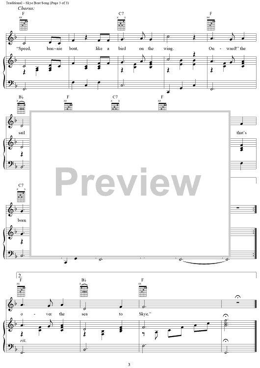 Digital Sheet Music for Skye Boat Song by Traditional scored for Piano/Vocal/Chords; id:311687