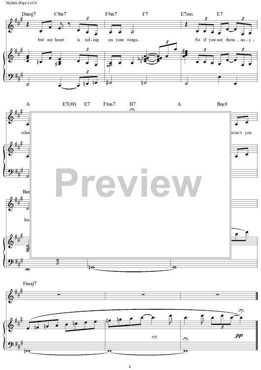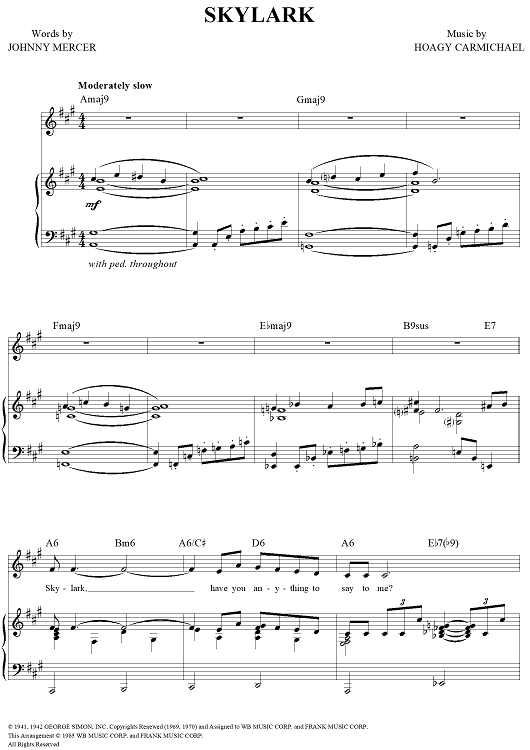 Digital Sheet Music for Skylark by Johnny Mercer, Hoagy Carmichael scored for Piano/Vocal/Chords; id:116266