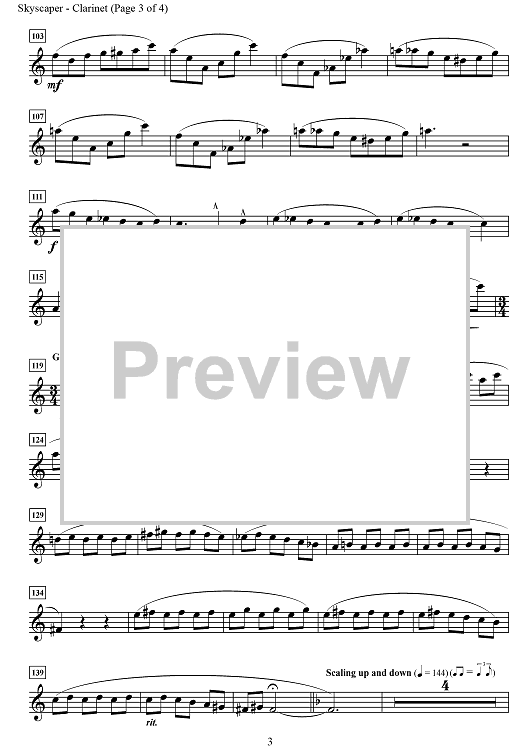 "Skyscraper - Clarinet" Sheet Music by Wynn-Anne Rossi