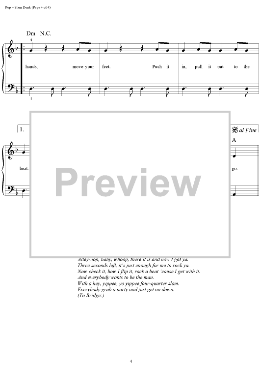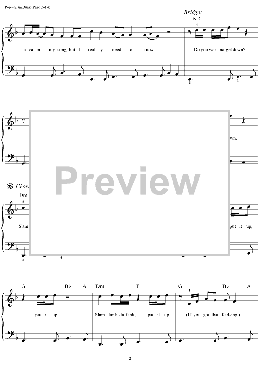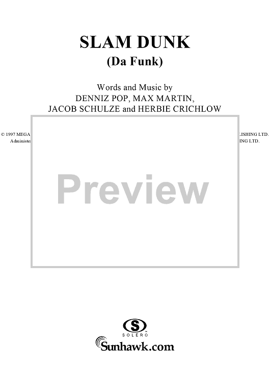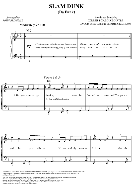 Digital Sheet Music for Slam Dunk (Da Funk) by Max Martin, Denniz Pop, Jacob Schulze, Herbie Crichlow, Five, John Brimhall scored for Easy Piano/Vocal; id:240556