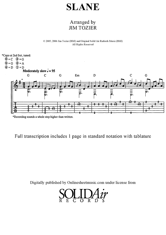 "Slane (With Embedded Audio)" Sheet Music by Jim Tozier