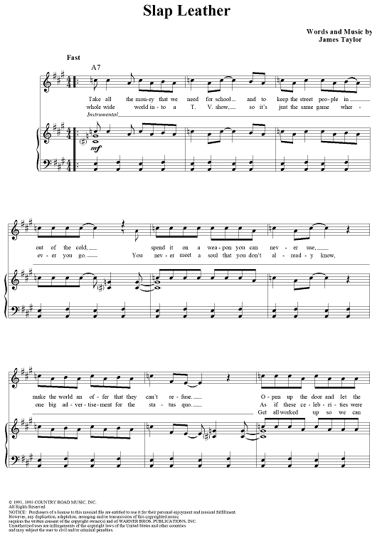 Digital Sheet Music for Slap Leather by James Taylor scored for Piano/Vocal/Chords; id:112402