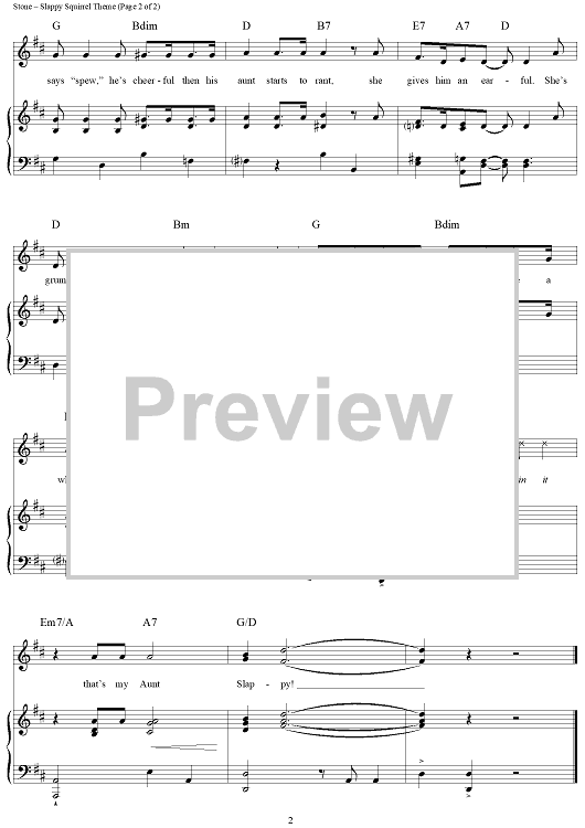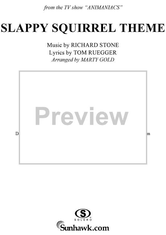 Digital Sheet Music for Slappy Squirrel Theme by Marty Gold, Richard Stone, Tom Ruegger scored for Piano/Vocal/Chords; id:259278