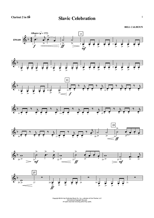 "Slavic Celebration - Clarinet 2 in Bb" Sheet Music by Bill Calhoun
