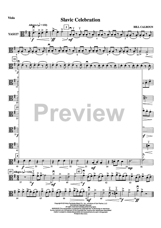 "Slavic Celebration - Viola" Sheet Music by Bill Calhoun