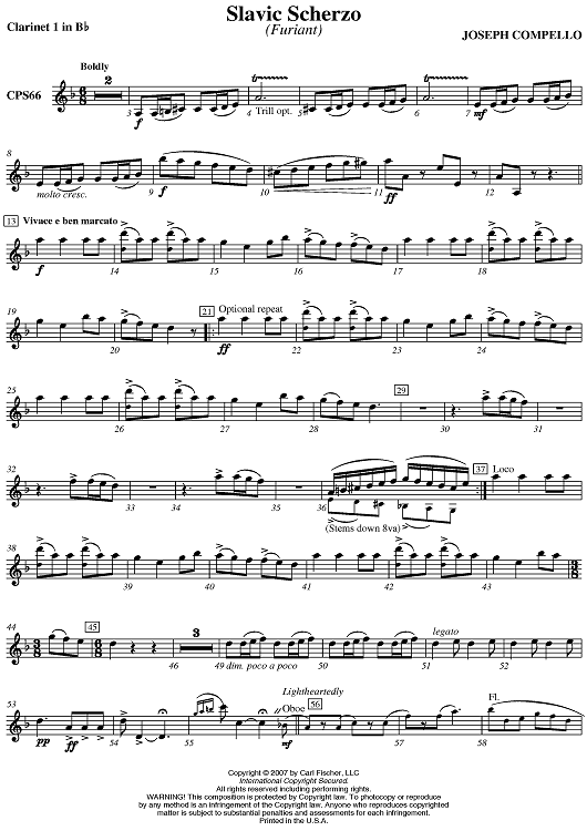 Digital Sheet Music for Slavic Scherzo - Clarinet 1 in B-flat by Joseph Compello scored for Concert Band; id:407238