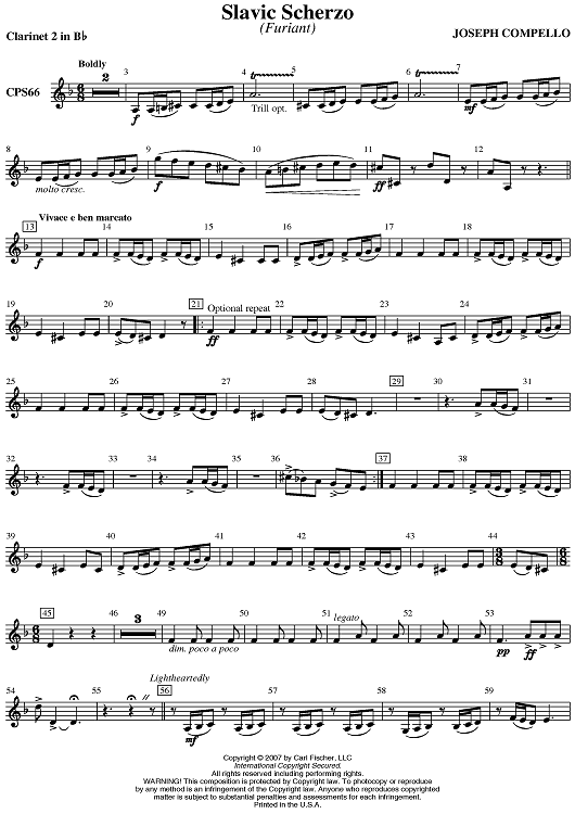 Digital Sheet Music for Slavic Scherzo - Clarinet 2 in B-flat by Joseph Compello scored for Concert Band; id:407239