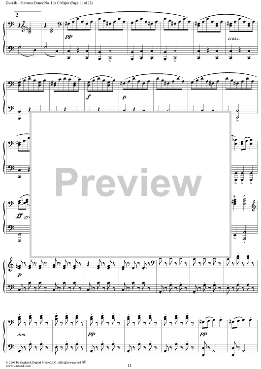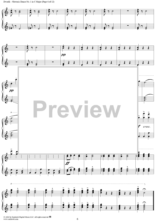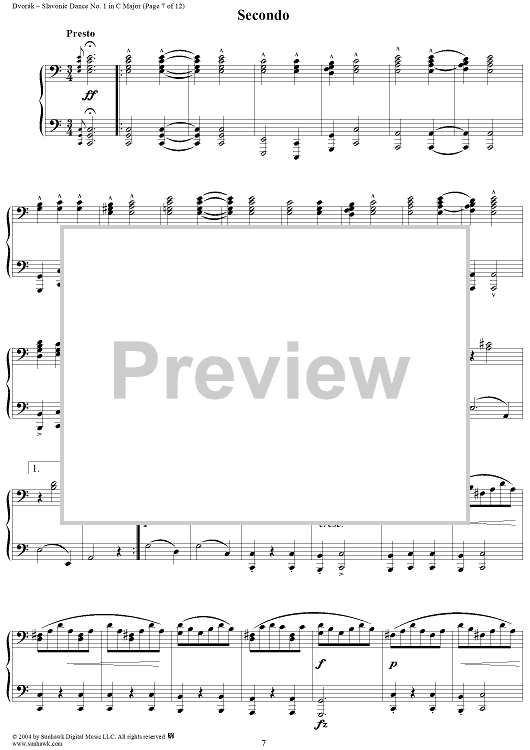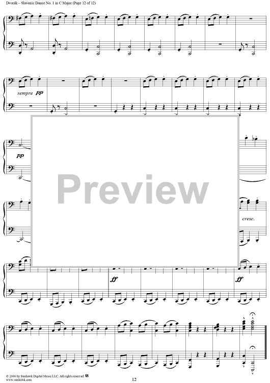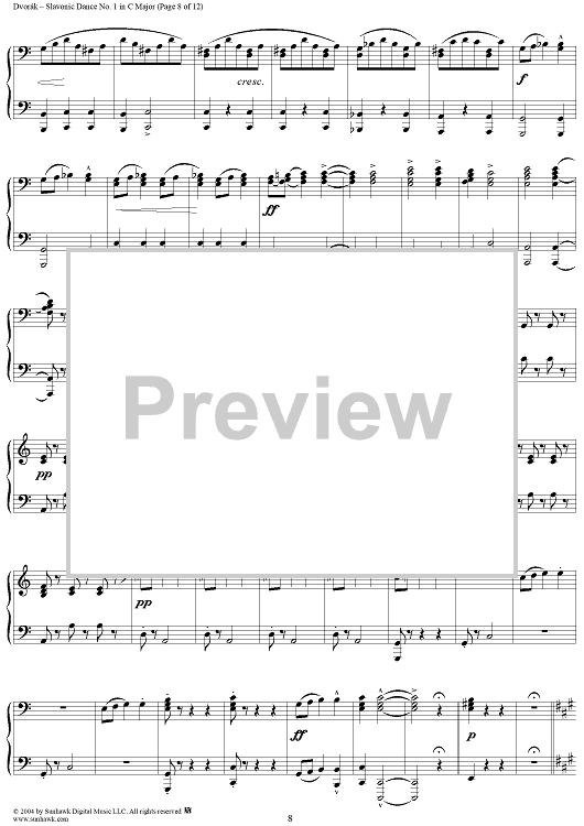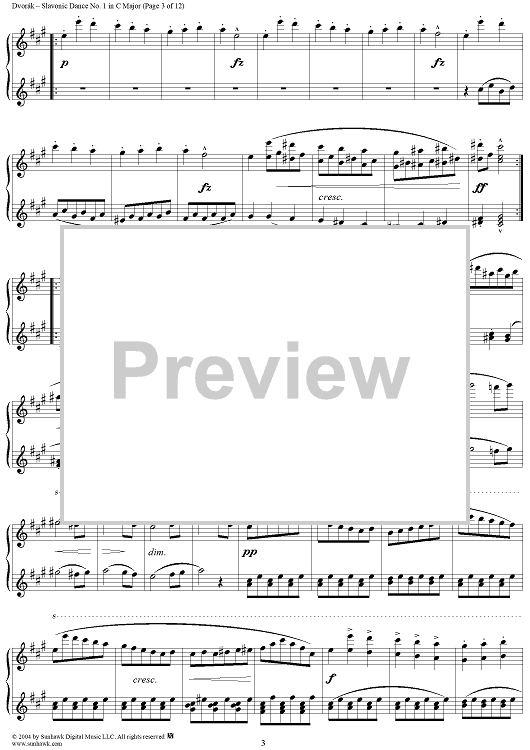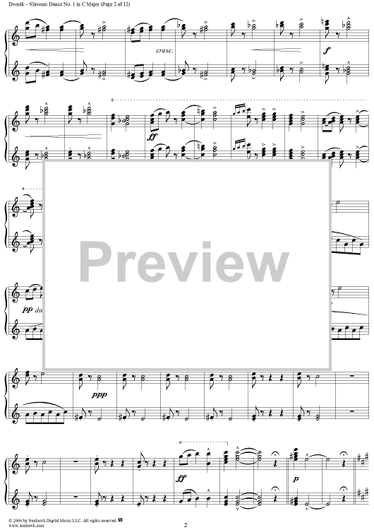 Digital Sheet Music for Slavonic Dance No. 1 in C Major, Op. 46, No. 1 by Antonín Dvorák scored for 1 Piano, 4 Hands; id:296089