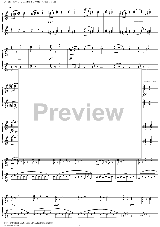 "Slavonic Dance No. 1 in C Major, Op. 46, No. 1" Sheet Music by Antonín Dvorák