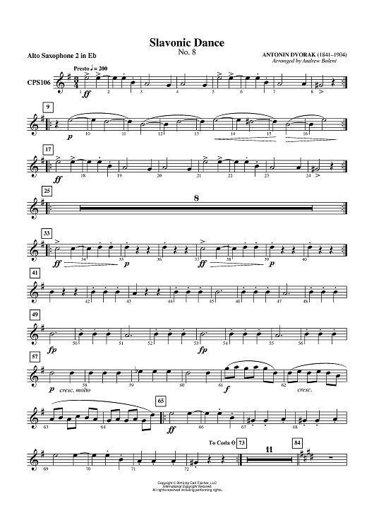 "Slavonic Dance No. 8 - Alto Sax 2" Sheet Music by Antonín Dvorák