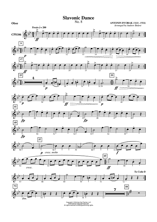 "Slavonic Dance No. 8 - Oboe" Sheet Music by Antonín Dvorák