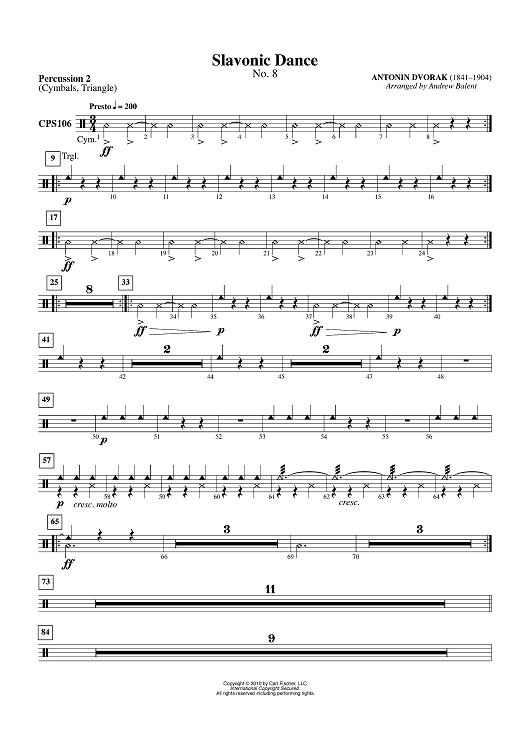 "Slavonic Dance No. 8 - Percussion 2" Sheet Music by Antonín Dvorák