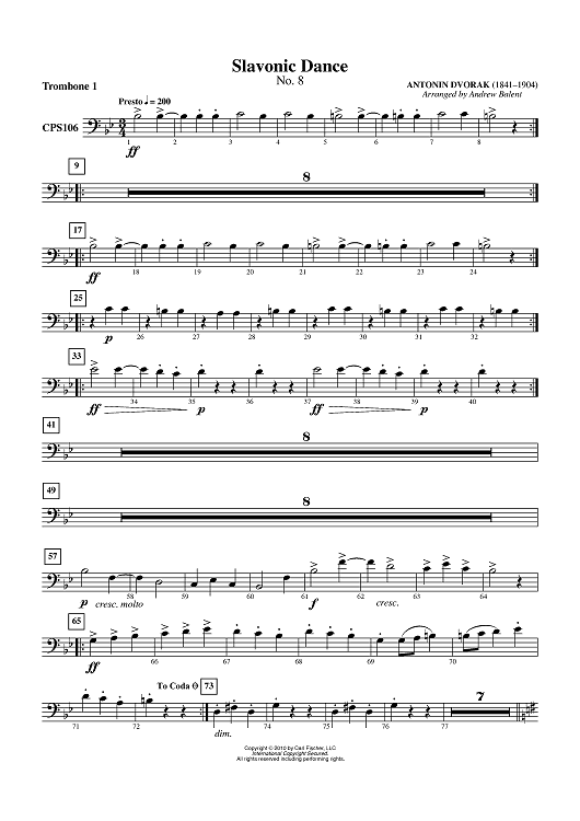 "Slavonic Dance No. 8 - Trombone 1" Sheet Music by Antonín Dvorák