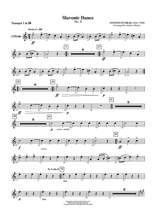 "Slavonic Dance No. 8 - Trumpet 1 in Bb" Sheet Music by Antonín Dvorák