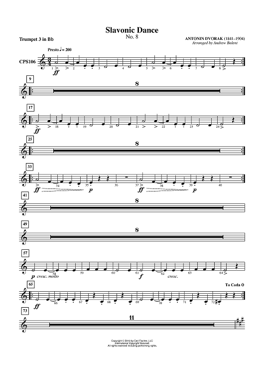 "Slavonic Dance No. 8 - Trumpet 3 in Bb" Sheet Music by Antonín Dvorák