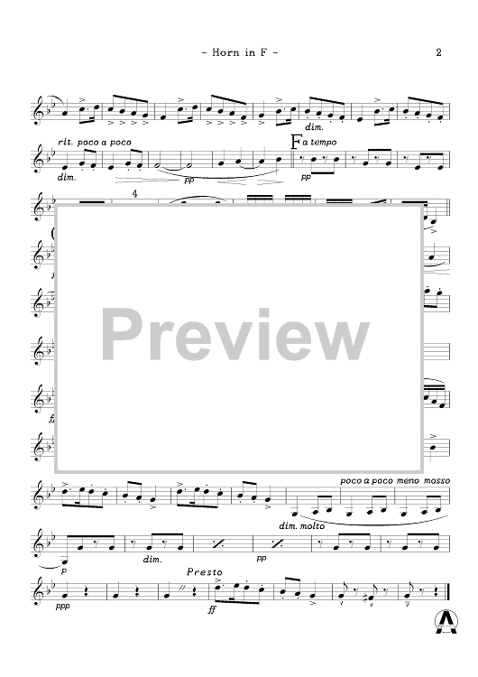 Digital Sheet Music for Slavonic Dance No.7, Op.46 - Horn in F by Antonín Dvorák, Kenneth Amis scored for Brass Quintet with Optional Percussion; id:366008