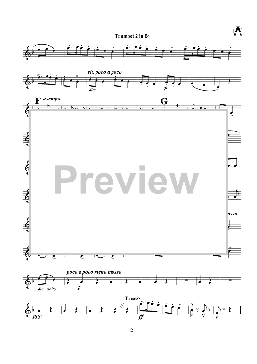 Digital Sheet Music for Slavonic Dance No.7, Op.46 - Trumpet 2 in Bb by Antonín Dvorák, Kenneth Amis scored for Brass Quintet with Optional Percussion; id:366006