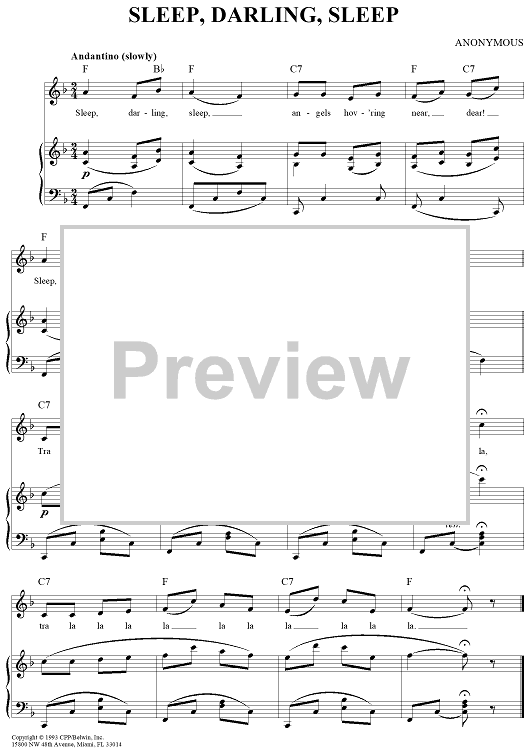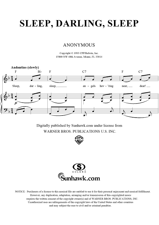 Digital Sheet Music for Sleep, Darling, Sleep by Unknown Writer scored for Piano/Vocal/Chords; id:277212
