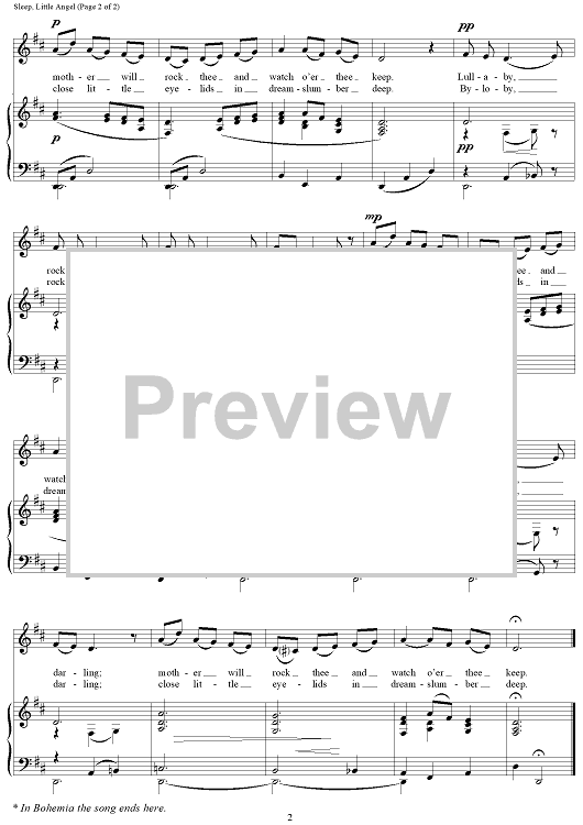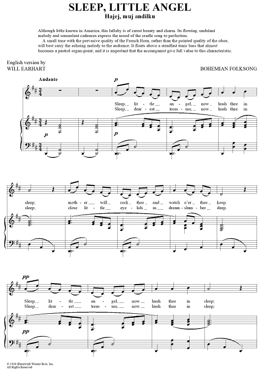 "Sleep, Little Angel" Sheet Music by Bohemian Folksong