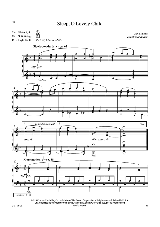 Digital Sheet Music for Sleep, O Lovely Child by , Carl Simone, Traditional Italian scored for Organ Solo; id:437265