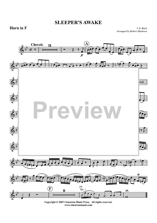 "Sleepers Awake - Horn in F" Sheet Music by Johann Sebastian Bach