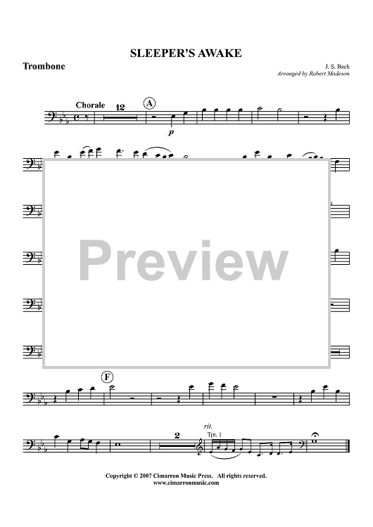 Digital Sheet Music for Sleepers Awake - Trombone by Robert Madeson, Johann Sebastian Bach scored for Brass Quintet; id:416913