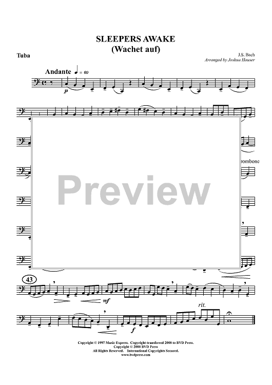"Sleepers Awake (Wachet auf) - Tuba" Sheet Music by Johann Sebastian Bach